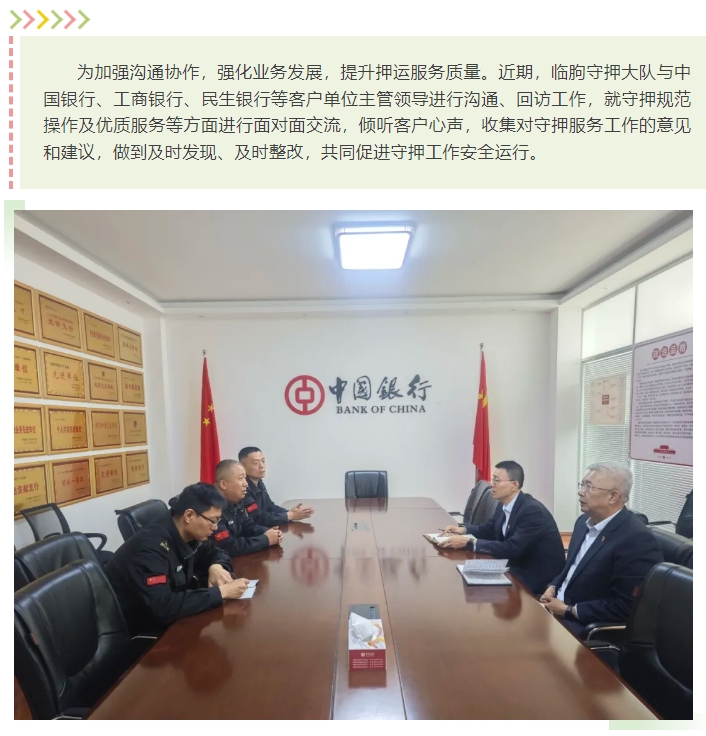 “聚焦客戶需求 提升服務質(zhì)量”—臨朐守押大隊積極開展銀行客戶單位走訪工作